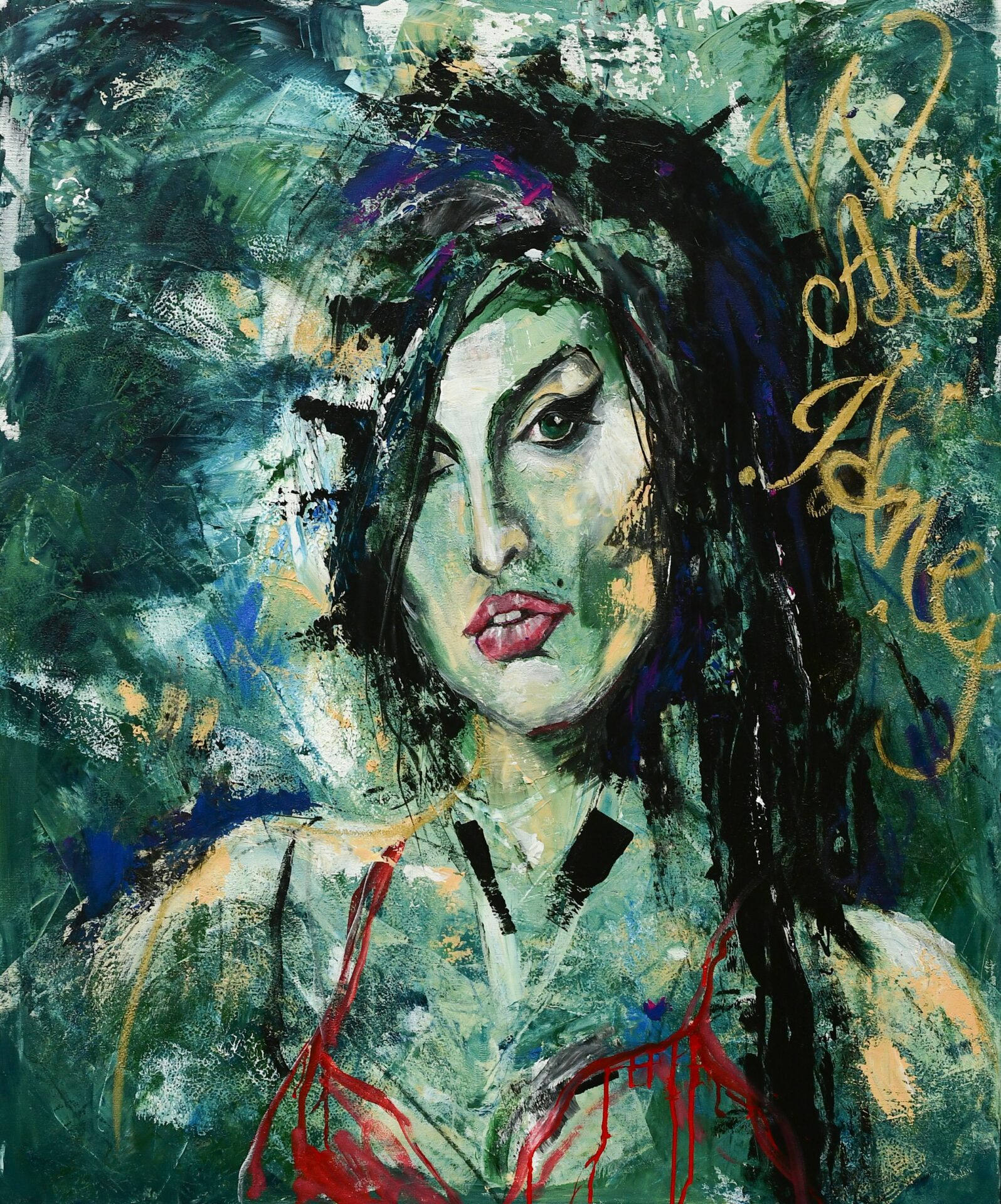 Ein besonderer Schwerpunkt Arbeit von Hildegard Günzel ist die Portraitmalerei, u.a. von starken weiblichen Persönlichkeiten. Amy Winehouse war bereits in jungen Jahren eine Legende in der Musikindustrie, die bereits früh an ihrem außergewöhnlichen Erfolg zerbrochen ist. Trotz der kurzen Schaffensperiode steht ihr ein Platz in der Musikgeschichte zu. Diese Faszination einer Stilikone hat Hildegard Günzel in ihrem Portrait eingefangen.
