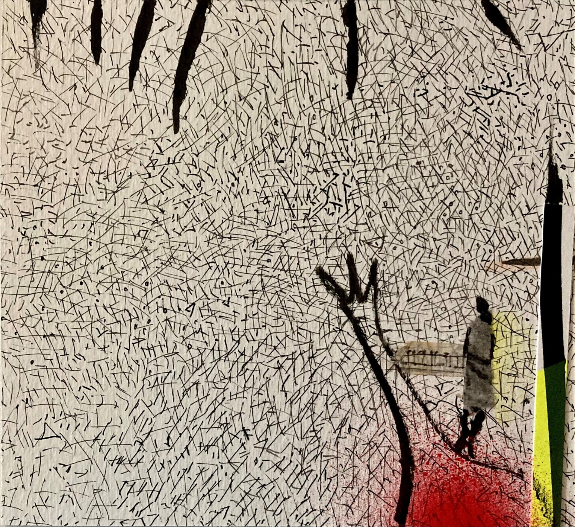 Collage; Tusche und Sprayfarbe über einem Urwolken-Fragment