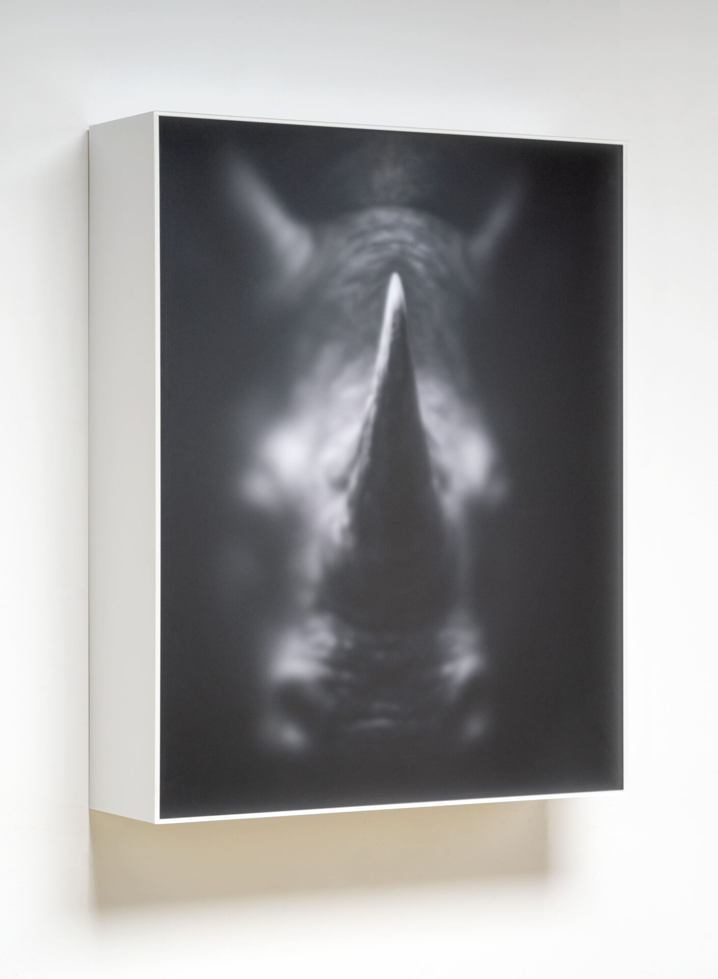 Mit Rhino aus seiner Reflection-Series zollt Maxim Wakultschik Albrecht Dürers legendärem Nashornholzschnitt von 1515 Tribut. Inspiriert von Dürers visionärer Kraft interpretiert er das Motiv in einer modernen, innovativen Formensprache. Das Werk verwandelt das Symbol für Stärke und Beständigkeit in ein zeitgenössisches Spiel aus Licht, Schatten und Wahrnehmung, als gefährdete Tierart und als Spiegelbild unserer sich wandelnden Beziehung zur Natur.